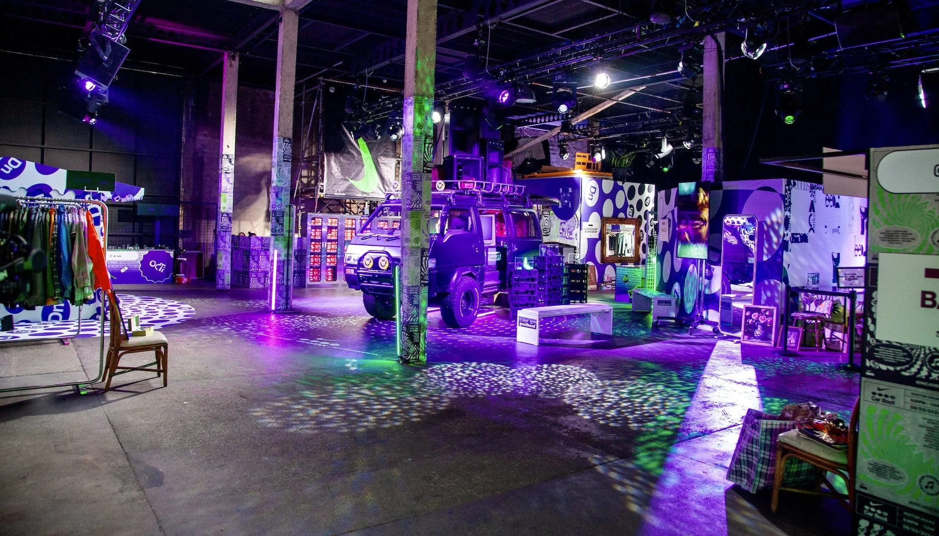 The brief was to create a product launch event for the Nike Air Max DN. The creative team at Seen Studios developed the concept of a car boot sale theme, where Nike could host various other streetwear brands and artists.